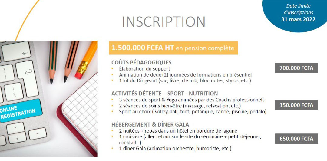 INSCRIVEZ-VOUS ICI TELECHARGEZ LA FICHE D'INSCRIPTION TELECHARGEZ LE PROGRAMME DE LA FORMATION